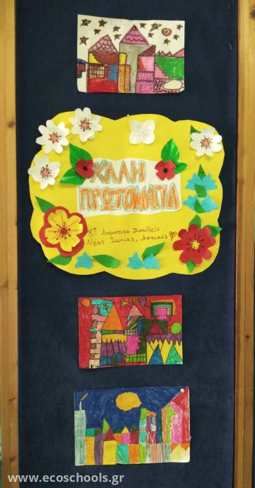 Στο 8º Δημοτικό Σχολείο Νέας Ιωνίας, Αττικής, το σχολικό έτος 2024-2025, με ιδιαίτερη χαρά και πολλά λαμπερά χρώματα τα παιδιά του Σχολείου μας υποδέχθηκαν τον Μάιο, τον μήνα των λουλουδιών, μέσα από τη διδασκαλία των Εικαστικών. Τα παιδιά από την Α’ έως και την ΣΤ’ τάξη συνεργάστηκαν δημιουργικά για τη γιορτή της Πρωτομαγιάς και συμμετείχαν σε δράσεις διάχυσης, μέσα από τις συνεργασίες μας με τα σχολεία από την Ελλάδα και το εξωτερικό. Το καινοτόμο μας πρόγραμμα «Δημιουργικές συνεργασίες για το Περιβάλλον και τον Πολιτισμού» έγινε πιο πλούσιο με τα έργα των παιδιών μας, που βίωσαν την χαρά της ανθισμένης φύσης.