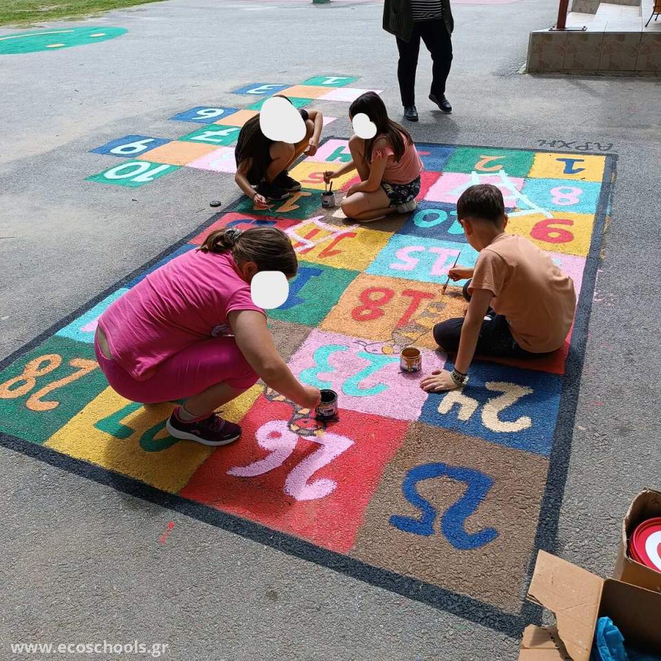 Κορύφωση της δράσης αποτέλεσε η δημιουργία ενός επιδαπέδιου παιχνιδιού "φιδάκι", το οποίο όχι μόνο ομορφαίνει τον χώρο, αλλά προσφέρει και χαρά και διασκέδαση στους μαθητές κάθε ηλικίας.