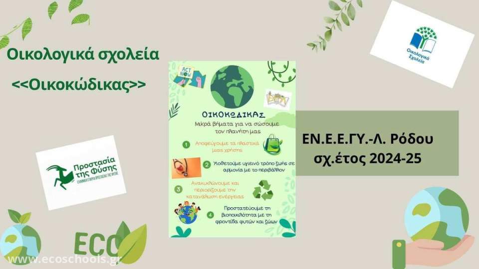 Για τρίτη συνεχή χρονιά, το ΕΝΕΕΓΥΛ Ρόδου συμμετείχε στο Διεθνές Δίκτυο «Οικολογικά Σχολεία», ενισχύοντας την περιβαλλοντική συνείδηση και καλλιεργώντας στάσεις ζωής με σεβασμό προς το περιβάλλον.