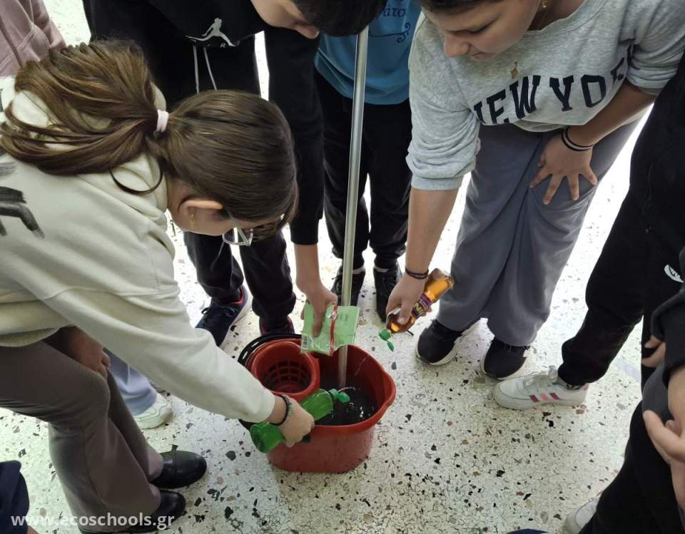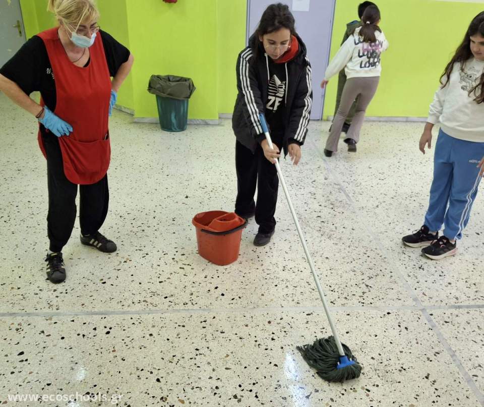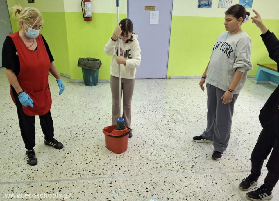 Η δημιουργία οικολογικών απορρυπαντικών από απλά, φυσικά υλικά όπως το ξίδι, η μαγειρική σόδα και το λεμόνι είναι μια φανταστική δράση περιβαλλοντικής εκπαίδευσης. Ξίδι: Λειτουργεί ως απολυμαντικό και διαλύει τα άλατα. Μαγειρική Σόδα: Είναι ήπιο λειαντικό, αποσμητικό και βοηθά στη διάσπαση της βρωμιάς. Λεμόνι: Προσφέρει αντιβακτηριδιακές ιδιότητες και φρέσκο άρωμα. Οι μαθητές/τριες της ΣΤ1 τάξης του σχολείου μας έφτιαξαν οικολογικό απορρυπαντικό πατωμάτων με ξίδι σόδα και λεμόνι. Με αυτό σφουγγάρισαν τον εσωτερικό χώρο του σχολείου έξω από τις αίθουσες. Τα αποτελέσματα ήταν θεαματικά. Το πάτωμα καθαρίστηκε με επιτυχία.