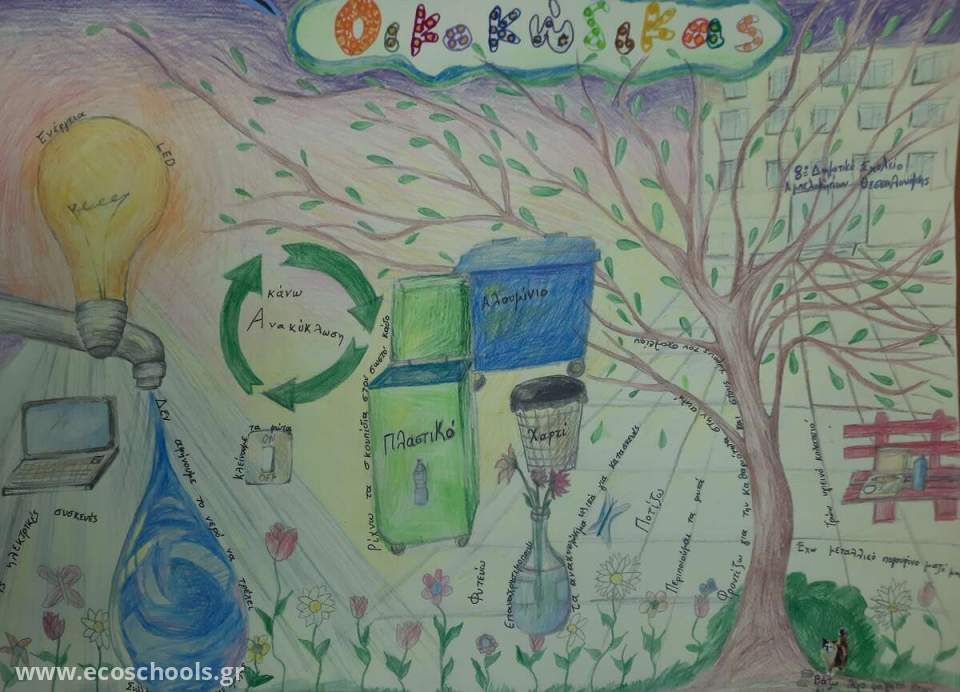 Ολοκληρώσαμε τη δημιουργία της αφίσας του Οικοκώδικα που είναι ένα σύνολο αρχών και πρακτικών που εφαρμόζεται στο σχολείο για την προώθηση της περιβαλλοντικής ευαισθητοποίησης και την υιοθέτηση βιώσιμων πρακτικών. Ο Οικοκώδικας στο σχολείο μας περιλαμβάνει τις εξής κατευθυντήριες γραμμές: