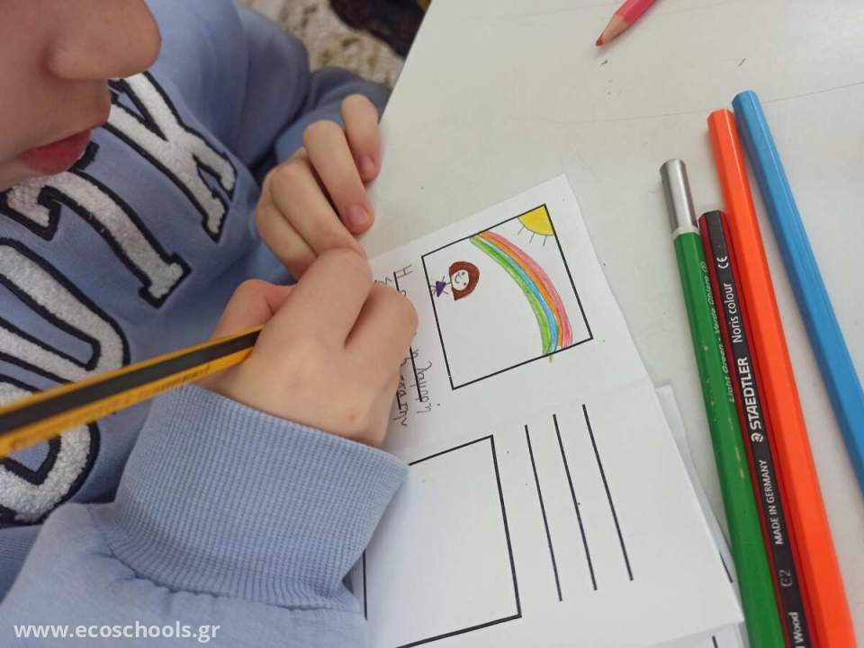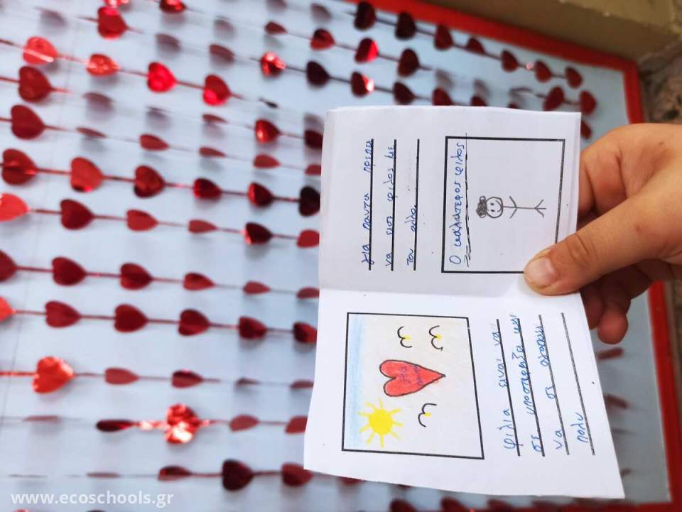 Η δράση συνεχίστηκε με τη δημιουργία μικρών βιβλίων, εμπνευσμένων από την παιδαγωγική του Célestin Freinet, με θέμα «Σαν οι άνθρωποι είναι… φίλοι». Μέσα από τις σελίδες τους, τα παιδιά ξεδίπλωσαν με δικά τους λόγια και εικόνες τη σημασία του να συνυπάρχουμε με καλοσύνη, εμπιστοσύνη και φροντίδα. Ήταν μια ημέρα που δεν έμεινε μόνο στη θεωρία της αγάπης, αλλά έγινε βίωμα, χρώμα και πράξη. Γιατί τελικά, όπως είπε κι ένας μικρός μας μαθητής… «Η φιλία είναι όταν ενώνεις το χαρτί σου με κάποιου άλλου και δεν το σκίζεις ποτέ.»