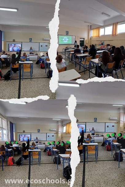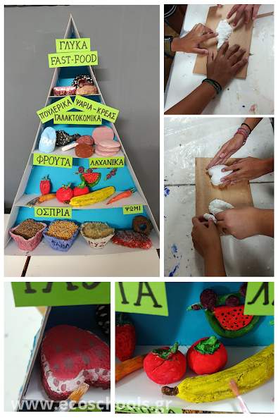 Επίσης ο εκπαιδευτικός του μαθήματος των εικαστικών μαζί με τους μαθητές δημιούργησαν την πυραμίδα προϊόντων σωστής διατροφής χρησιμοποιώντας χαρτοπολτό προάγοντας έτσι και την έννοια της ανακύκλωσης.