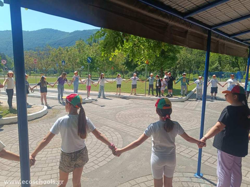Στη συνέχεια οι μαθητές μας συμμετείχαν σε μια ξεχωριστή περιβαλλοντική δράση που πραγματοποιήθηκε στο Πάρκο Κυκλοφοριακής Αγωγής του Δήμου Φλώρινας, σε συνεργασία με τον Όμιλο Ενεργών Νέων Φλώρινας – Europe Direct Δυτικής Μακεδονίας.