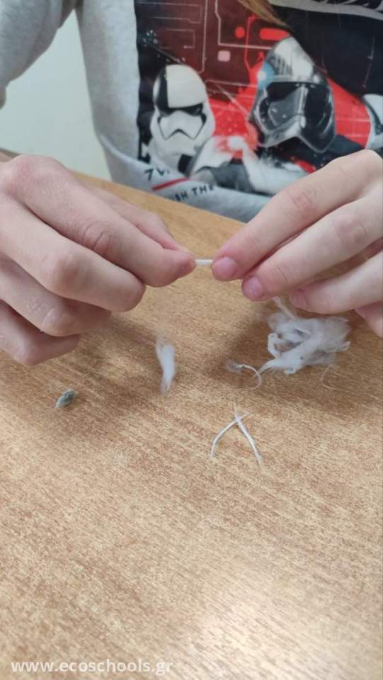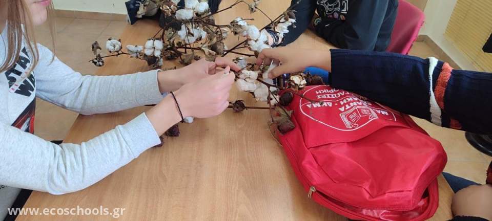 Οι μαθητές βιωματικά προχώρησαν σε νηματοποίηση από φυσικά φυτά βαμβακιού και εξερεύνησαν τις ετικέτες των ρούχων τους για να ανακαλύψουν αν περιέχουν βαμβάκι.