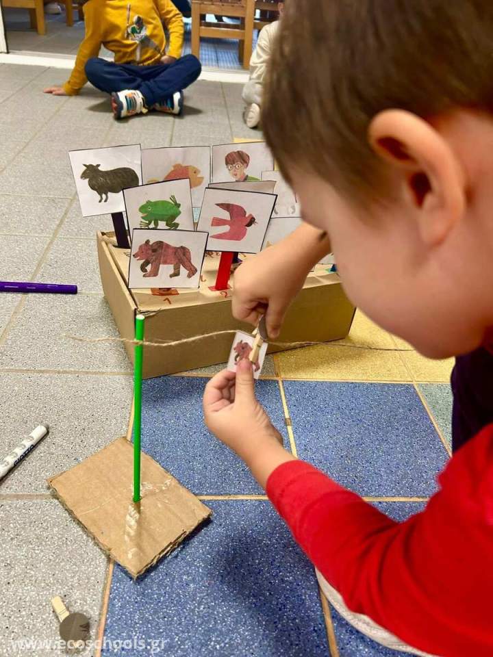 📖 Διαβάσαμε την Καφέ Αρκούδα του Eric Carle, μάθαμε ζώα και χρώματα, κάναμε «μπουγάδα» με μανταλάκια, ρίξαμε ζάρι και μιμηθήκαμε κινήσεις ζώων. 🐻🦋