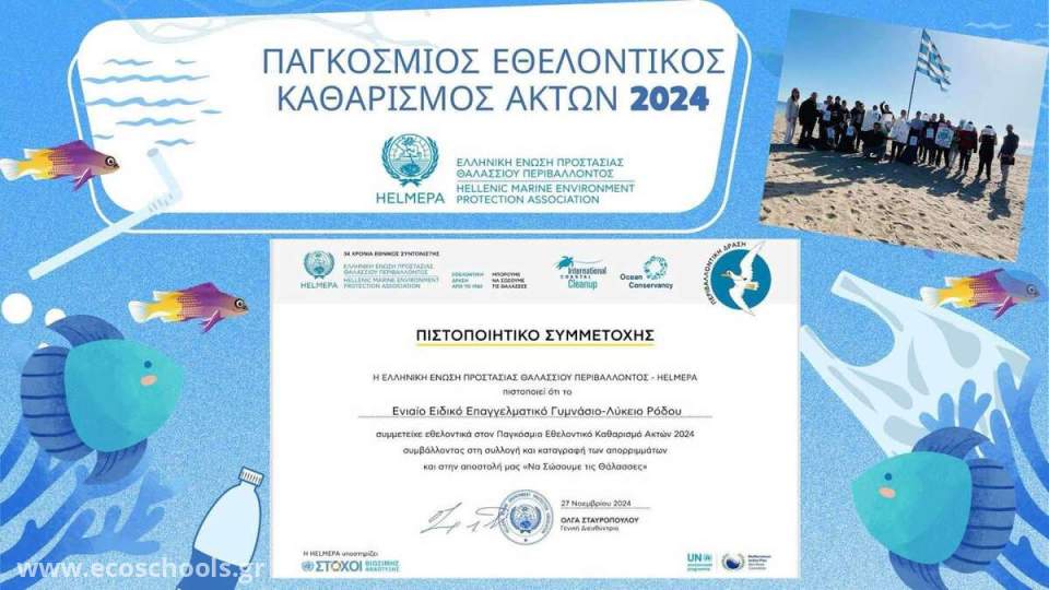 Παγκόσμιος Εθελοντικός Καθαρισμός Ακτών 2024- ΕΝΕΕΓΥΛ ΡΟΔΟΥ