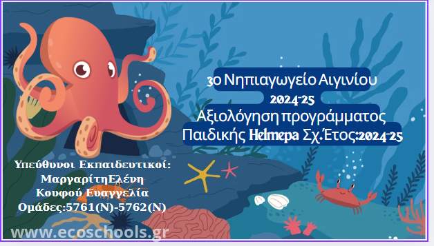 Οι δράσεις του Νηπιαγωγείου μας για το σχολικό έτος 2024-25 σε σχέση με το πρόγραμμα της Παιδικής Helmepa! Αξιολόγηση των δράσεων και εκπαιδευτικά αποτελέσματα του προγράμματος.