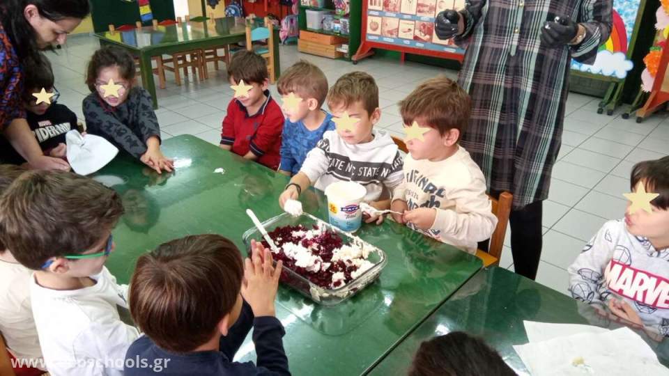 Όλοι ξέρουμε πόσο σημαντικά είναι τα λαχανικά για την καλή μας υγεία. Έτσι, με αφορμή το θέμα "Η σπορά", και μαθαίνοντας για τους βολβούς, ο φίλος μας ο κύριος Σταμάτης, ο γεωργός, μας έφερε φρεσκότατα παντζάρια για να δοκιμάσουμε! Εμείς αποφασίσαμε να φτιάξουμε τη δική μας παντζαροσαλάτα, με γιαούρτι, λάδι, ξύδι, καρύδια και σκόρδο. Μία σαλάτα γεμάτη βιταμίνες, πρωτεϊνες, ιχνοστοιχεία, υδατάνθρακες, καλά λιπαρά και αντιοξειδωτικές ουσίες. Ήταν πεντανόστιμη!!!! Και κάπως έτσι μαθαίνουμε να αποκτάμε καλές διατροφικές συνήθειες που συμβάλλουν στην ποιότητα ζωής μας.