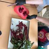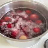 Αφού μαζέψαμε τα τελευταία παντζάρια από τον κήπο μας είχαμε την ιδέα φέτος να βάψουμε τα αβγά μας με ένα τρόπο διαφορετικό και οικολογικό. Τα παιδιά ενθουσιάστηκαν με την ιδέα, αλλά ακόμη περισσότερο όταν αντιλήφθηκαν πόσο χρώμα αφήνει το παντζάρι. Έτσι με τις φλούδες και τα φύλλα που περίσσεψαν άρχισαν να ζωγραφίζουν σε χαρτιά, αλλά και να βάφουν τα χείλη και τα μάγουλά τους. Αφού βράσαμε λοιπόν τα παντζάρια βάλαμε μέσα τα αβγά μας και σε λίγα λεπτά ήταν έτοιμα.