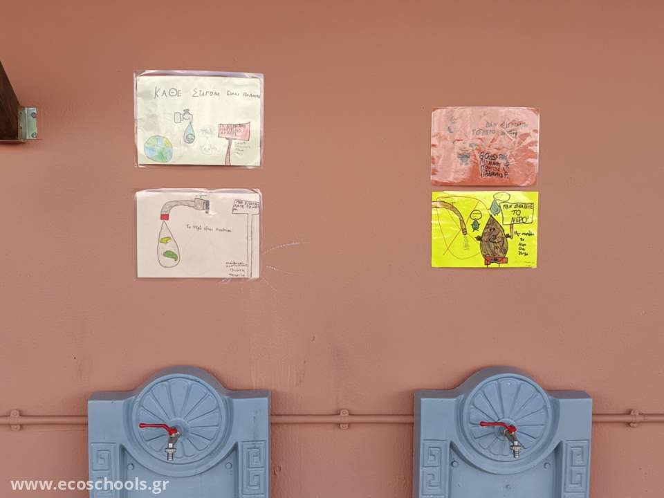 Τα μέλη της Περιβαλλοντικής Επιτροπής τοποθέτησαν τις Πινακίδες που δημιούργησαν στις βρύσες του σχολείου μας , ώστε να υπενθυμίζουν στους συμμαθητές τους να κλείνουν τη βρύση που χρησιμοποίησαν , αφού ΚΑΜΙΑ ΣΤΑΓΟΝΑ δεν πρέπει να πηγαίνει χαμένη !