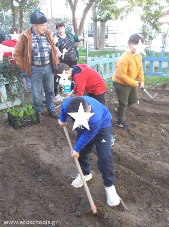 @ Ποδαρικό στο σχολικό κήπο έκαναν σήμερα οι μαθητές της Δ΄ τάξης του σχολείου σκάβοντας και φυτεύοντας τα πρώτα λαχανικά για τη φετινή χρονιά. Φυτεύτηκαν μαρούλια, μπρόκολο, σέλινο και κρεμμύδι . Αύριο και την επόμενη εβδομάδα θα συνεχίσουν οι μαθητές άλλων τάξεων φυτεύοντας άλλα λαχανικά. Στον κήπο και στα παρτέρια της αυλής βάζουμε λαχανικά, αρωματικά φυτά , αλλά και λουλούδια δυο φορές το χρόνο: Μια τον χειμώνα και μια την άνοιξη.