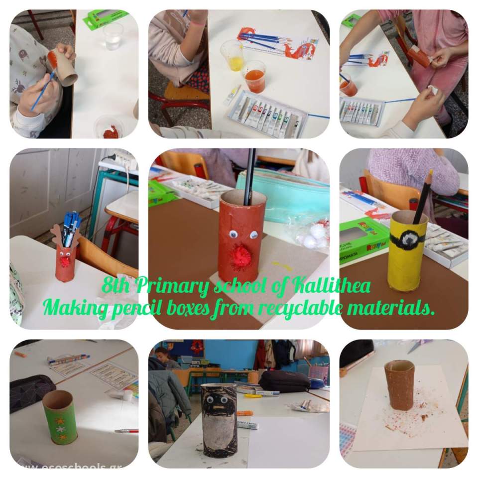 Στο πλαίσιο των δράσεων, οι μαθητές κατασκεύασαν μολυβοθήκες από ρολά χαρτιού, αξιοποιώντας απλά και ανακυκλώσιμα υλικά, αποδεικνύοντας ότι η δημιουργικότητα μπορεί να συνδυαστεί με την οικολογική συνείδηση. Παράλληλα, συμμετείχαν σε καθαρισμό του προαυλίου χώρου, δείχνοντας έμπρακτα τον σεβασμό τους προς το σχολικό περιβάλλον.