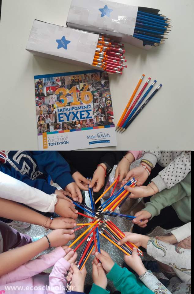 Οι μαθητές/τριες του Σχολείου μας και οι γονείς τους στήριξαν την πρωτοβουλία να προσφέρουμε στον οργανισμό Make-A-Wish Ελλάδας (Κάνε-Μια-Ευχή) με την αγορά 190 "Μεϊκ• ε• γουϊς" μολυβιών για να συμβάλλουμε κι εμείς στην εκπλήρωση ευχών των παιδιών που παλεύουν με σοβαρές ασθένειες. Με αφορμή την Παγκόσμια Ημέρα κατά του Παιδικού Καρκίνου, στις 15 Φεβρουαρίου 2025, ενώσαμε τις δυνάμεις και τις ευχές μας γι' αυτά τα παιδιά και τις οικογένειές τους ώστε να συνεχίσουν να πιστεύουν σε ένα καλύτερο αύριο.
