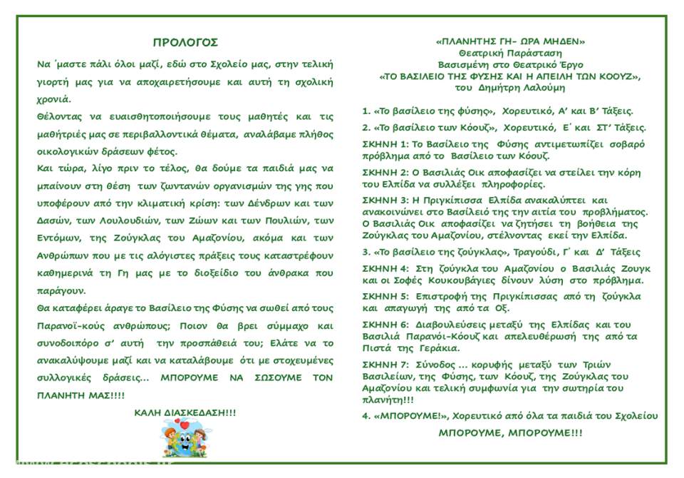 ΣΧΟΛΙΚΗ ΓΙΟΡΤΗ ΛΗΞΗΣ 2024-2025 "ΠΛΑΝΗΤΗΣ ΓΗ, ΩΡΑ ΜΗΔΕΝ"