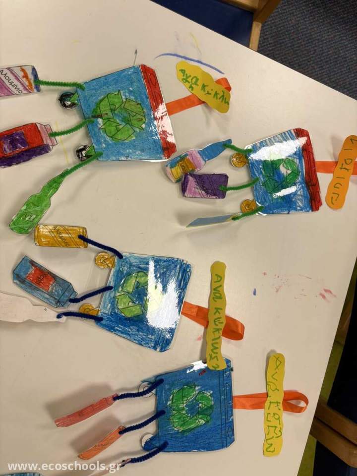 Ακολουθεί χειροτεχνία με το σήμα της ανακύκλωσης. Στο πλαίσιο του χαρτιού τα παιδιά μπορούν να ζωγραφίσουν ό,τι θέλουν σχετικό με την ανακύκλωση.