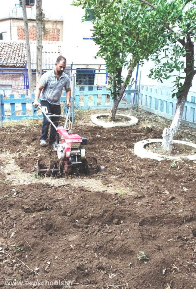 @ Το χώμα όργωσε με το σκαπτικό του μηχάνημα ο Στρατής Ταρρός - πατέρας της μαθήτριάς μας Σοφίας. Τον ευχαριστούμε θερμά, για την εξυπηρέτηση που μας έκανε. Το σκάψιμο συνέχισαν με κασμάδες και τσάπες μαθητές του σχολείου από τις μεγαλύτερες τάξεις