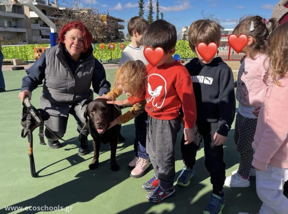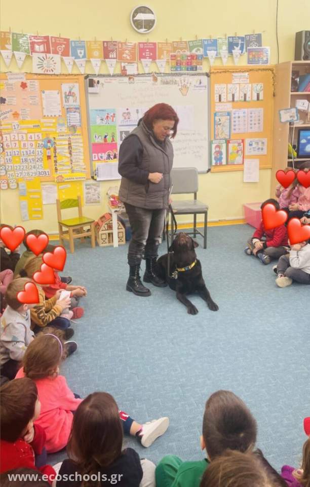 Κάθε φορά περιμένουμε με την ίδια χαρά και αγάπη την κ. Ιωάννα, https://www.facebook.com/ioannamaria, να μιλήσει στα παιδιά για την καθημερινότητά της με τον Μπάμπου, στο σπίτι, στο δρόμο, στην πόλη, στα Μέσα Μαζικής Μεταφοράς. Τα παιδιά είδαν από κοντά πόσο και πώς εργάζεται ένας σκύλος- οδηγός, πώς γίνεται “τα μάτια” ουσιαστικά του χειριστή του, πόσο τον αγαπά και πόσο τον φροντίζει καθημερινά.