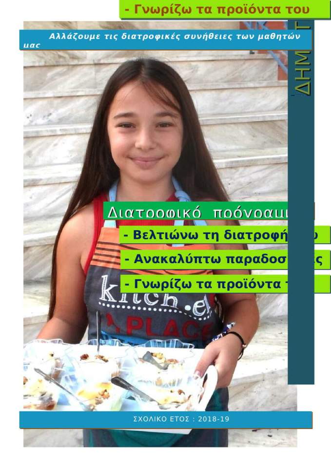 # Το πρόγραμμα υλοποιείται συνεχώς από το 2018-19 μέχρι σήμερα (2024-25) και έχει βραβευτεί δυο φορές σε πανελλαδικούς Διαγωνισμούς. Πλαισιώνεται από ομιλίες διατροφολόγων, γεωπόνων, παραγωγών κ.λπ. και επισκέψεις σε βιοτεχνικά εργαστήρια παραγωγής προϊόντων του νησιού μας. Είναι ενταγμένο στα Σχολικά Προγράμματα της ΔΙΠΕ ΛΕΣΒΟΥ. Ημέρα εφαρμογής των δράσεών του έχει ορισθεί κάθε Τρίτη απο΄ 10 -12