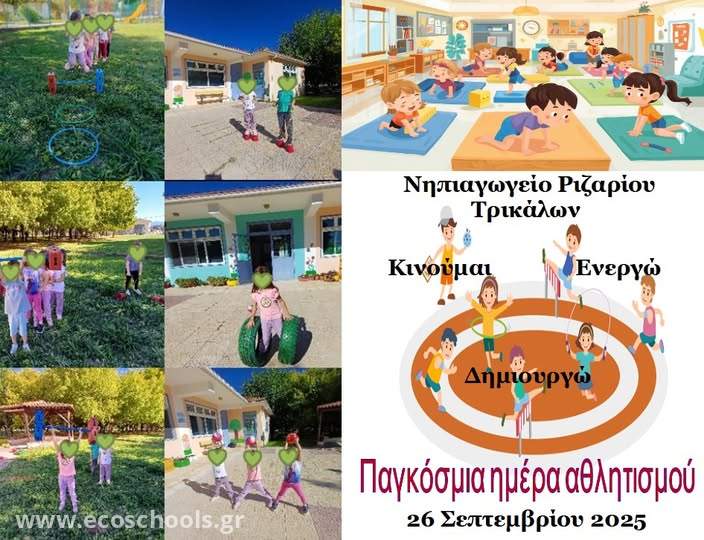 Το Νηπιαγωγείο Ριζαριού συμμετείχε στις εκδηλώσεις για τον εορτασμό της 12ης Πανελλήνιας Ημέρας Σχολικού Αθλητισμού 2025, η οποία εναρμονίζεται, όπως κάθε χρόνο, με την Ευρωπαϊκή Ημέρα Σχολικού Αθλητισμού στις 26 Σεπτεμβρίου 2025.