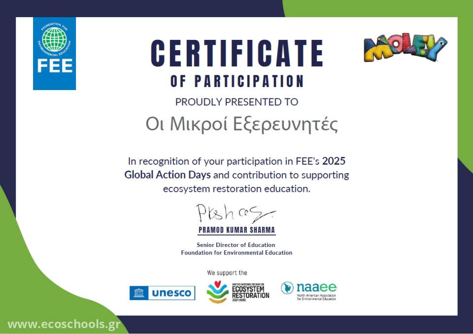 Και φέτος το σχολείο μας συμμετείχε στις ημέρες Περιβάλλοντος. Μέσα από τις δραστηριότητες μάθαμε την σημαντικότητα των μικρών πλασμάτων (των σκουληκιών) για το περιβάλλον, για την διάβρωση του εδάφους σε περιπτώσεις που δεν υπάρχουν δέντρα και για εναλλακτικούς τρόπους διατήρησης των τροφίμων. Στο τέλος, δεν μπορούσε να λείψει ένα πάρτυ για να γιορτάσουμε το περιβάλλον και να του δείξουμε την αγάπη και την αφοσίωση μας!