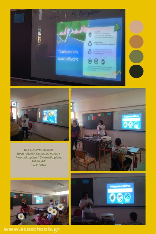 Συμμετοχή στο Περιβαλλοντικό Πρόγραμμα του ΚΕΠΕΑ Σουφλίου : «Ανακυκλοχώρα ή Σκουπιδοχώρα;»