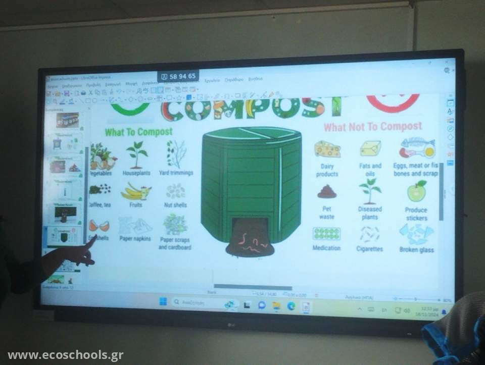 Στο πλαίσιο της Εβδομάδας Μείωσης Αποβλήτων που διοργανώθηκε από τον Ε.Ο.ΑΝ., από τις 16 έως τις 24 Νοεμβρίου, οι μαθητές και οι εκπαιδευτικοί του σχολείου μας συμμετείχαν ενεργά στη δημιουργία σωρού κομποστ. Χρησιμοποιήσαμε φυτικά υπολείμματα από το εργαστήριο μαγειρικής, καθώς και υλικά που έφεραν οι μαθητές από το σπίτι τους. Για τα ξερά υλικά, συγκεντρώσαμε φύλλα από το προαύλιο του σχολείου μας.