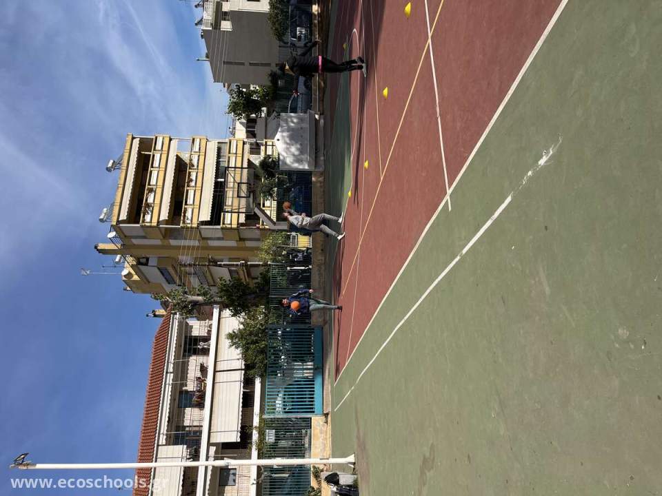 3. Την 4η ώρα πραγματοποιήθηκε ένα παιχνίδι μπασκετ μεταξύ των δύο σχολείων με τη βοήθεια της Γυμνάστριας.