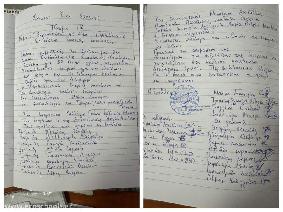 ΣΥΣΤΑΣΗ ΠΕΡΙΒΑΛΛΟΝΤΙΚΗΣ ΕΠΙΤΡΟΠΗΣ ΤΟΥ 1ου ΓΥΜΝΑΣΙΟΥ ΝΕΑΣ ΑΓΧΙΑΛΟΥ ΓΙΑ ΤΟ ΣΧΟΛΙΚΟ ΕΤΟΣ 2025-26