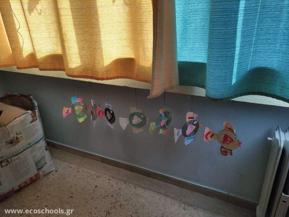Οι μικροί μας μαθητές και μαθήτριες έφτιαξαν «μπαμπουλόψαρα» με παλιά σι ντι που έφεραν από το σπίτι τους. Τα παιδιά έμαθαν μέσα από την κατασκευή την αξία της ανακύκλωσης παλιών αντικειμένων και πως μπορούν να ξαναπάρουν αξία αντί να πεταχτούν. Τέλος, ψάξαμε και βρήκαμε πληροφορίες για τα ψάρια και το πως ζουν.
