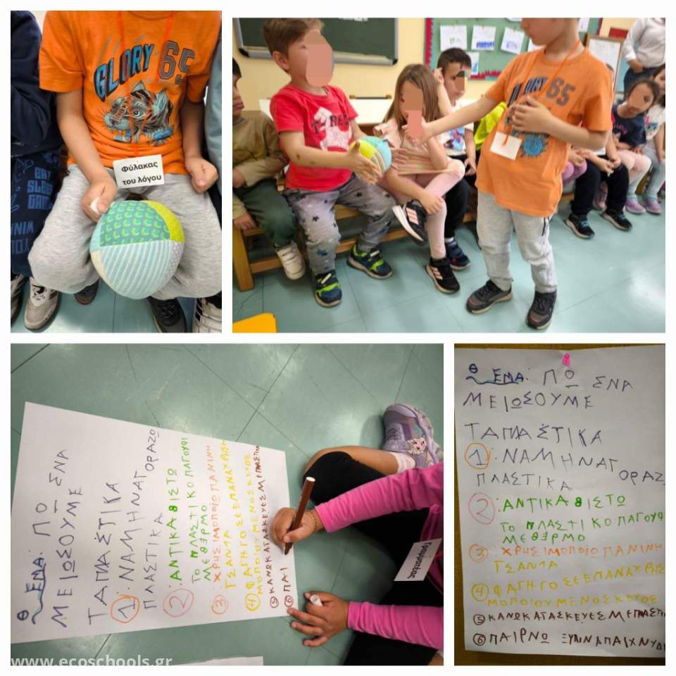 - Μετά από όλα αυτά τα ευρήματα, συγκαλέσαμε συμβούλιο τάξης προκειμένου να δούμε τι μπορούμε να κάνουμε εμείς για να μειώσουμε τα πλαστικά απορρίμματα. Ερευνούμε το χώρο του σχολείου και καταγράφουμε τα είδη που είναι από πλαστικό γύρω μας και το πλήθος τους.