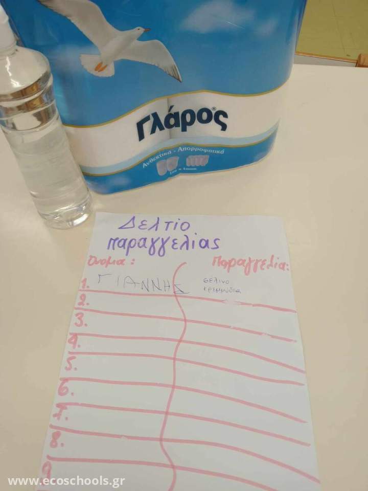 1. Γράψαμε το όνομα και την παραγγελία στο δελτίο παραγγελίας.