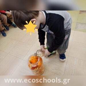 Τόσα νεράτζια πεταμένα και πατημένα στους δρόμους έγιναν αφορμή για συζητήσεις και αναζητήσεις λύσεων. Δοκιμάσαμε να τα φάμε, δυστυχώς δεν μας άρεσαν. Σκεφτήκαμε να τα κάνουμε γλυκό ή μαρμελάδα αλλά είμαστε μικροί για κατσαρόλες...Έτσι, βρήκαμε μια λύση εύκολη, γρήγορη και αποτελεσματική! Οι φλούδες των νερατζιών θα συγκεντρωθούν μαζί με τις φλούδες των εσπεριδοειδών που ζητήσαμε από τους γονείς μας σε μεγάλα δοχεία. Τα δοχεία θα συμπληρωθούν με λευκό ξύδι και θα μείνουν για δύο εβδομάδες. Στη συνέχεια το καθαριστικό θα δοθεί στην υπεύθυνη καθαριότητας του σχολείου μας για να καθαρίσει και το υπόλοιπο θα ανταλλαχθεί με όσους γονείς επιθυμούν να το πάρουν με είδη που χρειαζόμαστε στο σχολείο.