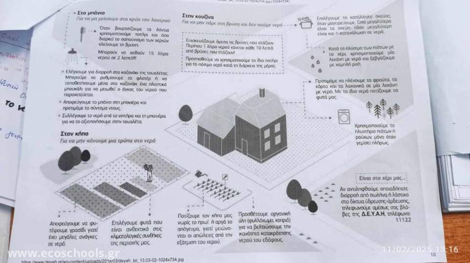 Η Ε και ΣT τάξη, αφού επεξεργάστηκε το φυλλάδιο "Τρόποι εξοικονόμησης νερού", μετά από διαλογική συζήτηση, κατέληξε σε κάποιους βασικούς τρόπους που μπορεί να ακολουθήσει κάποιος για να εξοικονομεί και να μην σπαταλά το πολύτιμο αγαθό της φύσης, το νερό. Η επεξεργασία του φυλλαδίου αυτού έγινε σε συνδυασμό με την ενότητα της Φυσικής, Ενέργεια (οικονομία στη χρήση της ενέργειας) Κατόπιν αυτού, οι μαθητές κ οι μαθήτριες του τμήματος κατασκεύασαν από ανακυκλώσιμα υλικά (καπάκια μπουκαλιών νερού) την "πολύτιμη σταγόνα".Την πλαισίωσαν με μικρότερες σταγόνες στις οποίες έγραψαν τις δικές τους προτάσεις για εξοικονόμηση νερού.