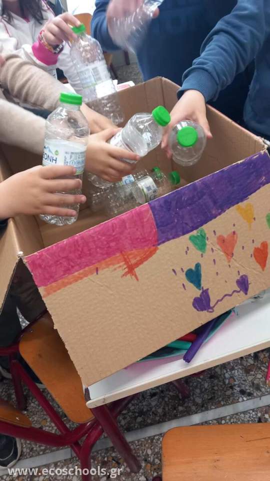 Οι μαθητές όλων των τάξεων του 17ο ΔΗΜΟΤΙΚΟΥ ΣΧΟΛΕΙΟΥ Χαλκίδας, αφού προβληματίστηκαν για τα απορρίμματα και τα σκουπίδια που γεμίζουν καθημερινά την επιφάνεια της γης, μίλησαν για την ρύπανση του περιβάλλοντος. Ακολούθως αποφάσισαν απλό κοινού να φτιάξουν και να τοποθετήσουν στις. αίθουσες διδασκαλίας κάδους για την συλλογή πλαστικών μπουκαλιών, και χαρτιού, Τους κάδους οι μαθητές τους έφτιαξαν με τα χαρτόκουτα που βρίσκονται στο σχολείο , από την διανομή φρούτων και φαγητών.