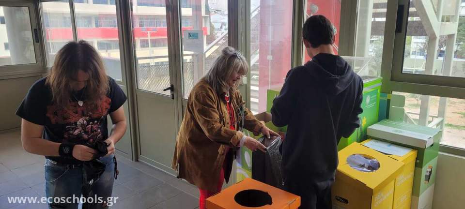 Η συλλογή, διαλογή και κατηγοριοποίηση των ανακυκλώσιμων υλικών, έγινε από τους μαθητές και τις μαθήτριες του Προγράμματος Περιβαλλοντικής Εκπαίδευσης "Κυψέλες: Τα μελισσόσπιτα της Άνδρου. Ισορροπία στο οικοσύστημα", από τις εκπαιδευτικούς και των δύο προγραμμάτων Π.Ε. που υλοποιήθηκαν στην εκπαιδευτική μας μονάδα, αλλά και από εκπαιδευτικούς των δύο ΕΠΑ.Λ. που υποστηρίζουμε.