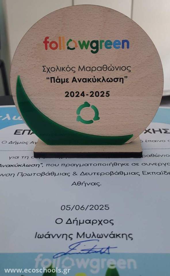 Την Παγκόσμια Ημέρα Περιβάλλοντος, 5/5/2025, βραβεύτηκαν τα σχολεία που συμμετείχαν στον σχολικό μαραθώνιο Ανακύκλωσης του Δήμου Αγίας Παρασκευής, στο πλαίσιο της συμμετοχής τους στο Follow green. Το Εργαστηριακό Κέντρο Αγίας Παρασκευής, πήρε το 2ο βραβείο στη Δευτεροβάθμια Εκπαίδευση.
