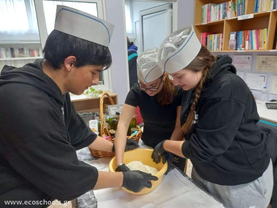 Με την καθοδήγηση των συντονιστών εκπαιδευτικών ζύμωσαν στον χώρο του σχολείου σπιτικά ψωμάκια με σταρένιο αλεύρι Κρήτης και συμμετείχαν σε όλη τη διαδικασία, από την προετοιμασία της ζύμης, μέχρι το φούσκωμα και το φούρνισμα σε παραδοσιακό φούρνο της γειτονιάς.