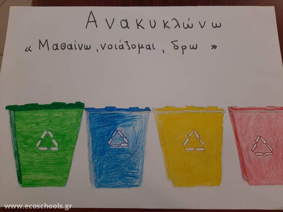 Στο πλαίσιο του προγράμματος  των Οικολογικών  Σχολείων με τίτλο «Αειφόρο Σχολείο: Μαθαίνω, Νοιάζομαι, Δρω», τα παιδιά δημιούργησαν  αφίσες με σκοπό να ευαισθητοποιήσουν τη σχολική κοινότητα για τη σημασία της προστασίας της φύσης. Με χρώματα, εικόνες και μηνύματα, έστειλαν το δικό τους μήνυμα: όλοι μπορούμε να συμβάλουμε σε έναν πιο καθαρό και βιώσιμο πλανήτη.