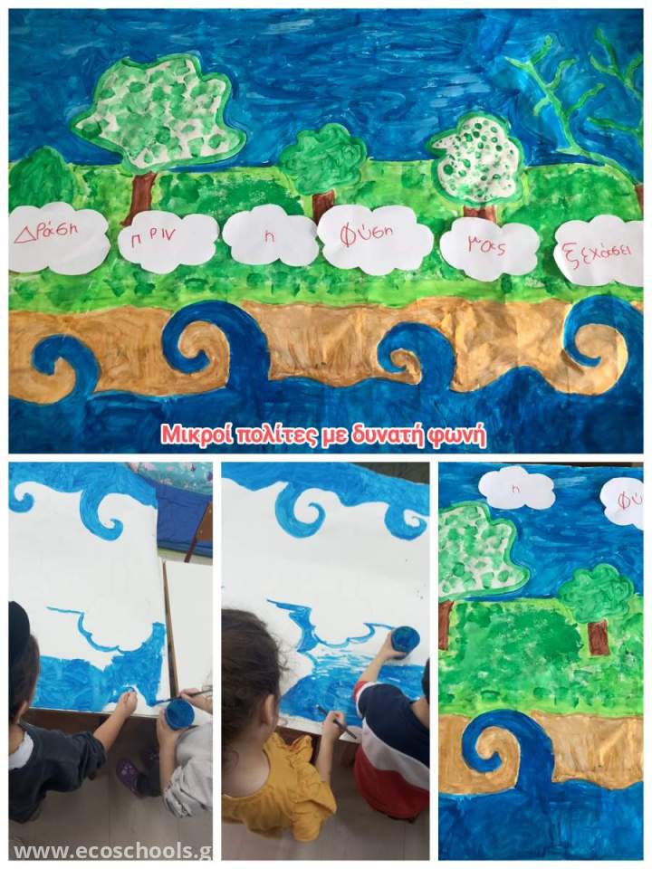 Η περιβαλλοντική επιτροπή του νηπιαγωγείου μας , αφού ολοκλήρωσε τη δράση ΄΄Γράμμα στους ηγέτες΄΄, έκανε πρόταση να δημιουργήσει μια αφίσα περνώντας ένα μήνυμα στην τοπική κοινωνία σχετικά με την προστασία της φύσης.