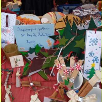 Ένας μέρος των χριστουγεννιάτικων κατασκευών που έφτιαξαν οι τάξεις Α, Β, Γ και Ε διατέθηκαν στο σπιτάκι της Φιλοζωικής στην πλατεία Χαλανδρίου, με σκοπό να συγκεντρωθούν χρήματα για τα ζώα που φροντίζουν.