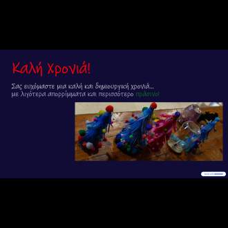 Στα πλαίσια της δράσης "δημιουργικά διαλείμματα" και κατά τη συμμετοχή των μαθητών στο "Εικαστικό εργαστήρι" υπό την εποπτεία και τον συντονισμό της Διευθύντριας του σχολείου, οι μαθητές δημιουργούς χριστουγεννιάτικες κατασκευές για τον στολισμό του σχολείου. Χρησιμοποιούν ανακυκλώσιμα υλικά σε ένα μαγικό πάντρεμα με υλικά της φύσης.