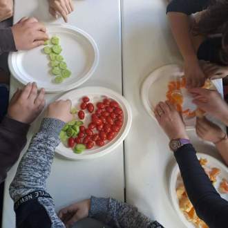 Στο πλαίσιο της εβδομάδας των χριστουγεννιάτικων δράσεων του σχολείου μας, υλοποιήθηκε μια πρωτότυπη και εναλλακτική βιωματική δράση, κατά την οποία οι μαθητές δημιούργησαν χριστουγεννιάτικα δέντρα χρησιμοποιώντας φρούτα και λαχανικά εποχής.