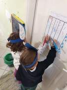 Σχέδιο εξοικονόμησης καθαρού νερού στο Νηπιαγωγείο 1. Αρχικά φτιάξαμε έναν ημερήσιο πίνακα καταγραφής και ορίσαμε ομάδες εποπτείας. 2.Καθημερινά για μια εβδομάδα (5 ημέρες) καταγράφαμε τη χρήση νερού στα 2 καζανάκια. 3. Αφού ολοκληρώθηκε η καταγραφή προχωρήσαμε στην καταμέτρηση και απαντήσαμε στο ερώτημα : Πόσες φορές ‘πατήσαμε’ το καζανάκι την κάθε ημέρα; 4. Πειραματιστήκαμε για να βρούμε τον τρόπο υπολογισμού του μέσου όρου κατανάλωσης και καταλήξαμε να χρησιμοποιήσουμε τους μαρκαδόρους. Διαπιστώσαμε ότι χρησιμοποιούμε περίπου 20 φορές την ημέρα τα καζανάκια στο Νηπιαγωγείο μας .