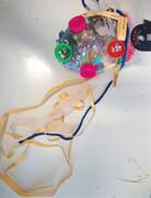 οι μαθητές έφτιαξαν μικρά αντικείμενα/accesoirs για τις κούκλες από ανακυκλώσιμα υλικά