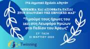 "Τιμώντας τους ήρωες του 1821 στη Λεωφόρο Ηρώων στο Πεδίον του Άρεως" : Πρόγραμμα eTwinning "Mνημεία και Αξιοθέατα: Ταξίδι στον πολιτισμό της περιοχής μας"