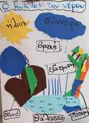 Αφού οι μαθητές των Α-β τάξεων, ολοκλήρωσαν το σχέδιο δράσης που αφορούσε την γνωριμία με τους φυσικούς πόρους που πηγάζει το θαύμα της φύσης το ΝΕΡΟ, Προχωρήσαμε στη Θεματική ενότητα της Μελέτης Περιβάλλοντος, ενότητα 9 της Β τάξης, με θέμα< Ο ΚΥΚΛΟΣ ΤΟΥ ΝΕΡΟΥ>.Οι μαθητές παρατήρησαν όλα τα στάδια αλλαγής του νερού και τους παράγοντες που τα επηρεάζουν και κατανόησαν τη μεταμόρφωση - μεταποίηση της διαδικασίας του κύκλου του νερού.