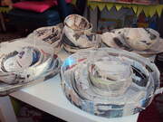 Συλλέξαμε εφημερίδες και περιοδικά και κατασκευάσαμε πιάτα και μπολ διακοσμητικά, αξιοποιώντας τον όγκο αυτών των απορριμμάτων που συσσωρεύεται στα σπίτια μας και στην καλύτερη περίπτωση καταλήγει στην ανακύκλωση.