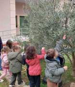 Επιτέλους μετά από αρκετές μέρες συνεχούς βροχόπτωσης ετοιμαστήκαμε για το λιομάζωμα. Φέτος μόνο 2 από τα τρία δέντρα μας είχαν ελιές, ήταν όμως αρκετές για να εμπλακούν όλοι οι μαθητές στη διαδικασία. Εκεί που υπήρχαν οι ψιλές ελιές στρώθηκε ελιόπανο και χρησιμοποιήθηκαν τα ειδικά σύνεργα για να "χτενίσουν" τα παιδιά τις ελιές και να τις ρίξουν κάτω.Στο άλλο δέντρο με τις χοντρές ελιές η συλλογή έγινε με τα χέρια! Στην συνέχεια μέσα στην τάξη αποδώσαμε τη διαδικασία του λιομαζώματος σε μία ομαδική εικαστική δημιουργία ζωγραφικής και κολλάζ.