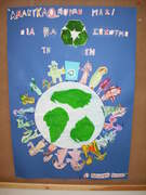 Μετά το πείραμα, χάρη στο οποίο τα παιδιά ανακάλυψαν ένα από τα σημαντικότερα οφέλη της ανακύκλωσης- τη μείωση των απορριμμάτων- γεννήθηκε η επιθυμία να παροτρύνουμε κι άλλους να ακολουθήσουν το παραδειγμά μας. Προέκυψε ένα σύνθημα και το σύνθημα έγινε η αφίσα μας. ΑΝΑΚΥΚΛΩΝΟΥΜΕ ΜΑΖΙ ΓΙΑ ΝΑ ΣΩΣΟΥΜΕ ΤΗ ΓΗ.